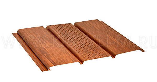 Компания «Кровли-М» предлагает вам купить металлические софиты Aquasystem российского производства, которые превосходят зарубежные аналоги по соотношению цена / качество. Прочные и долговечные металлические софиты используются для подшивки карнизных свесов кровли. Если фронтон крыши выступает за линию примыкающей стены, то софиты могут быть смонтированы и на фронтонном свесе. Софиты выполняют роль декоративной отделки свесов и одновременно служат дополнительной защитой для кровельных конструкций. Производятся трех видов - с перфорацией по всей поверхности, с частичной перфорацией и без перфорации. Последний вариант называется «сплошной софит». Их правильное чередование на свесах кровли обеспечивает оптимальную вентиляцию подкровельного пространства. Через отверстия в перфорированных листах воздух свободно поступает под кровлю и это способствует удалению избыточной влаги. Правильная вентиляция кровли препятствует образованию конденсата и предотвращает гниение деревянных конструкций, а также появление плесени и грибка на кровельных покрытиях. Таким образом, софиты помогают продлить срок службы всей кровли и на долгие годы сохранить ее привлекательный внешний вид. Широкая палитра оттенков дает возможность подобрать тот цвет, который будет наилучшим образом гармонировать с расцветкой кровли и фасадов вашего дома. Типы металлических софитов АквасистемСофит с центральной перфорацией